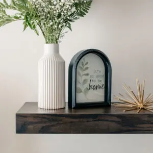 We make installation simple — all hardware is included, and each shelf mounts securely with hidden brackets for a seamless “floating” appearance. Built for both beauty and performance, our shelves are rated to hold up to 15 lbs per linear foot when properly installed, giving you the strength and confidence to display décor, books, or kitchen essentials.