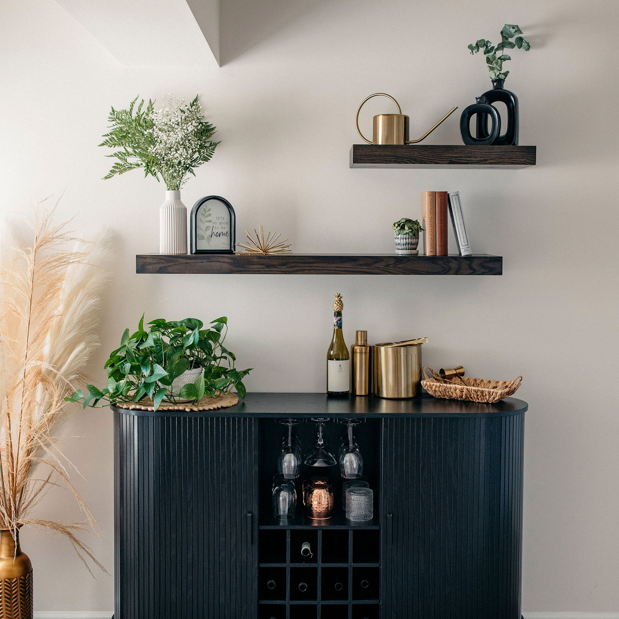 We make installation simple — all hardware is included, and each shelf mounts securely with hidden brackets for a seamless “floating” appearance. Built for both beauty and performance, our shelves are rated to hold up to 15 lbs per linear foot when properly installed, giving you the strength and confidence to display décor, books, or kitchen essentials.